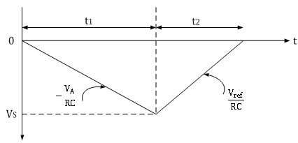The same integrator is then used to . A simplified diagram is shown in figure 1, and the integrator output waveforms are shown in figure 2. The voltage on the capacitor is compared against the reference voltage using a latched comparator (the . The input signal is applied to an . In a dual slope adc, the input is integrated on to a capacitor for 2^n cycles of the counter.